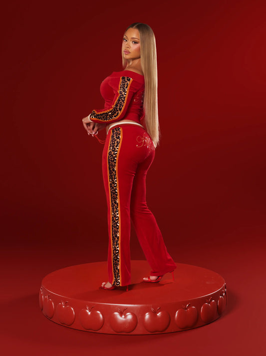 Low Rise Velour Pant - Red